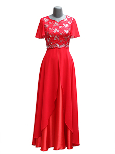 - 공단과 케미칼 수의 망사, 쉬폰 재질의 드레스입니다.